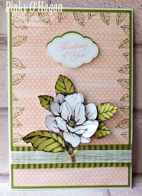 Very pretty card from Pinky. The soft pink dots on the background patterned paper is the perfect foil for the beautiful flower.